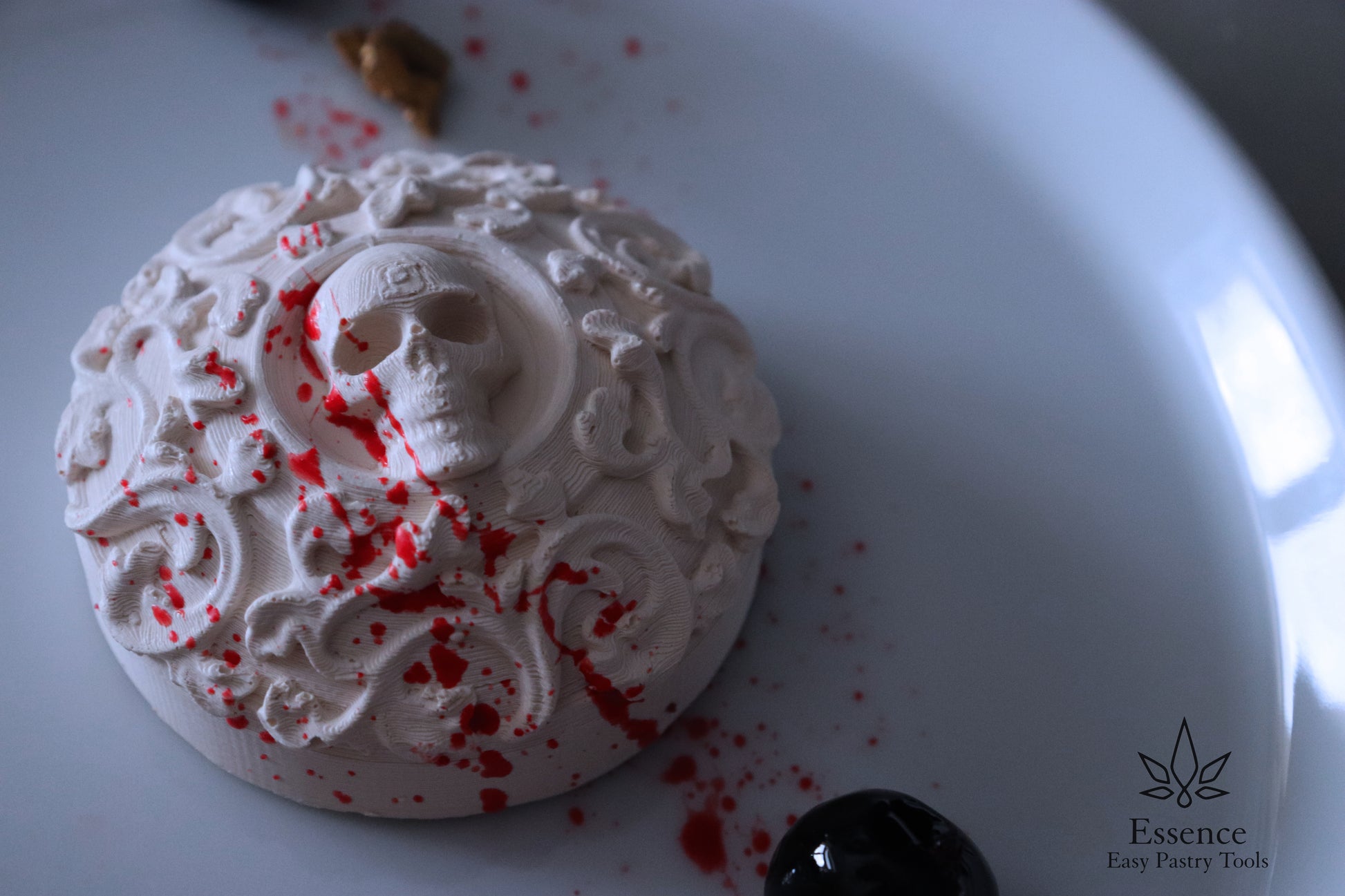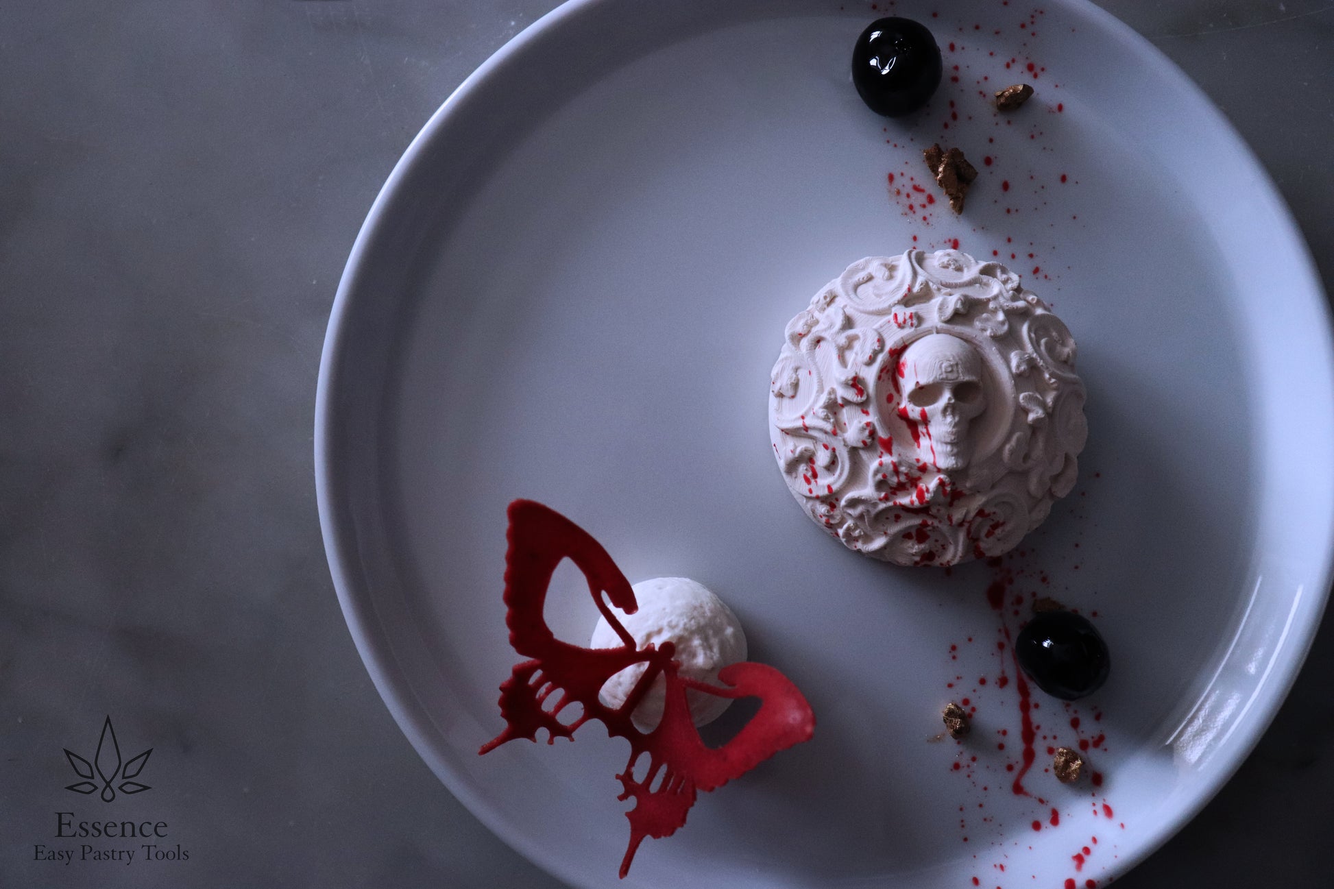 The "Memento Mori" dessert created by our Pastry Chef Marco De Donno consists of a single portion with a black forest flavor and a black cherry flavored tuille. For a spooky Halloween dinner!